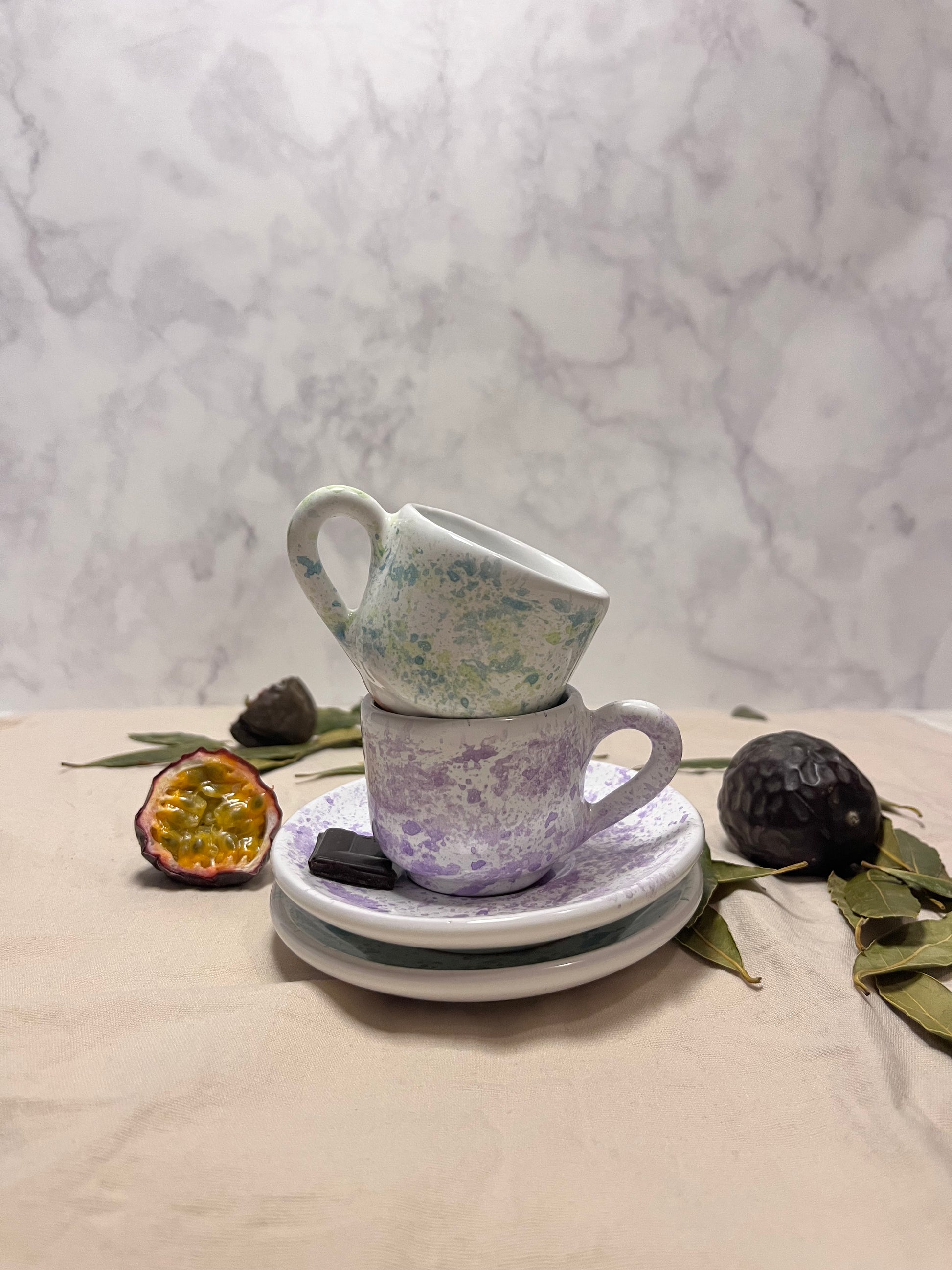 Beginnen Sie Ihren Tag mit dieser süßen Espressotasse. Das gesprenkelte Design wird Sie für den Rest des Tages in gute Stimmung versetzen.